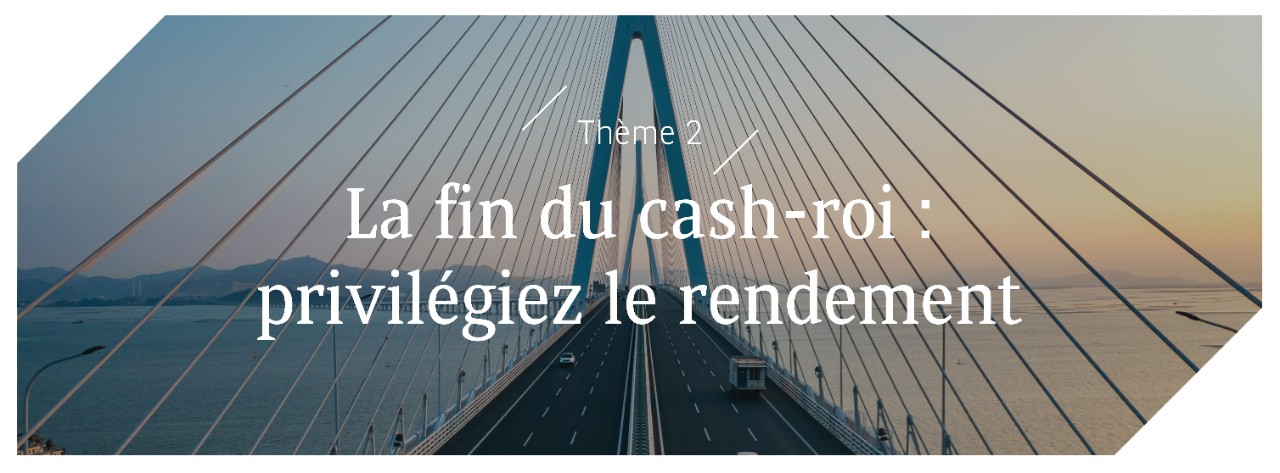 • Inflation persistante : les banques centrales pourraient être contraintes de suspendre leurs baisses de taux, voire de les relever. Cela aura pour effet de maintenir les rendements en espèces élevés plus longtemps et donc de réduire l’urgence à sortir des dépôts.